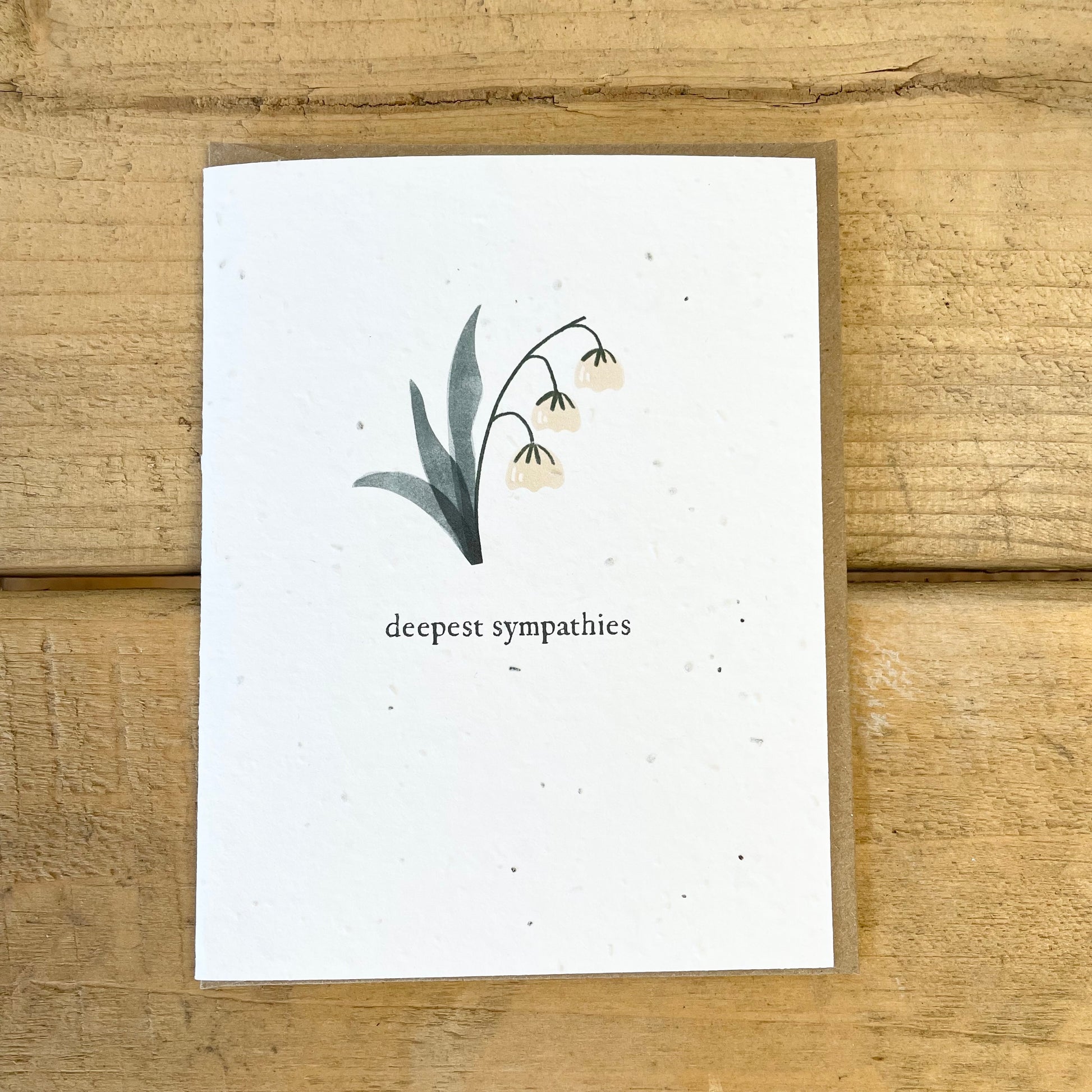 Plantable seed paper cards are made from bio-degradable, post-consumer waste meaning no new trees are harmed. Each card is full of a blend of 6 different wildflower seeds, that are all tested for purity, non-GMO, and non-invasive. All cards are printed with non-toxic ink, and are left blank inside for your message.