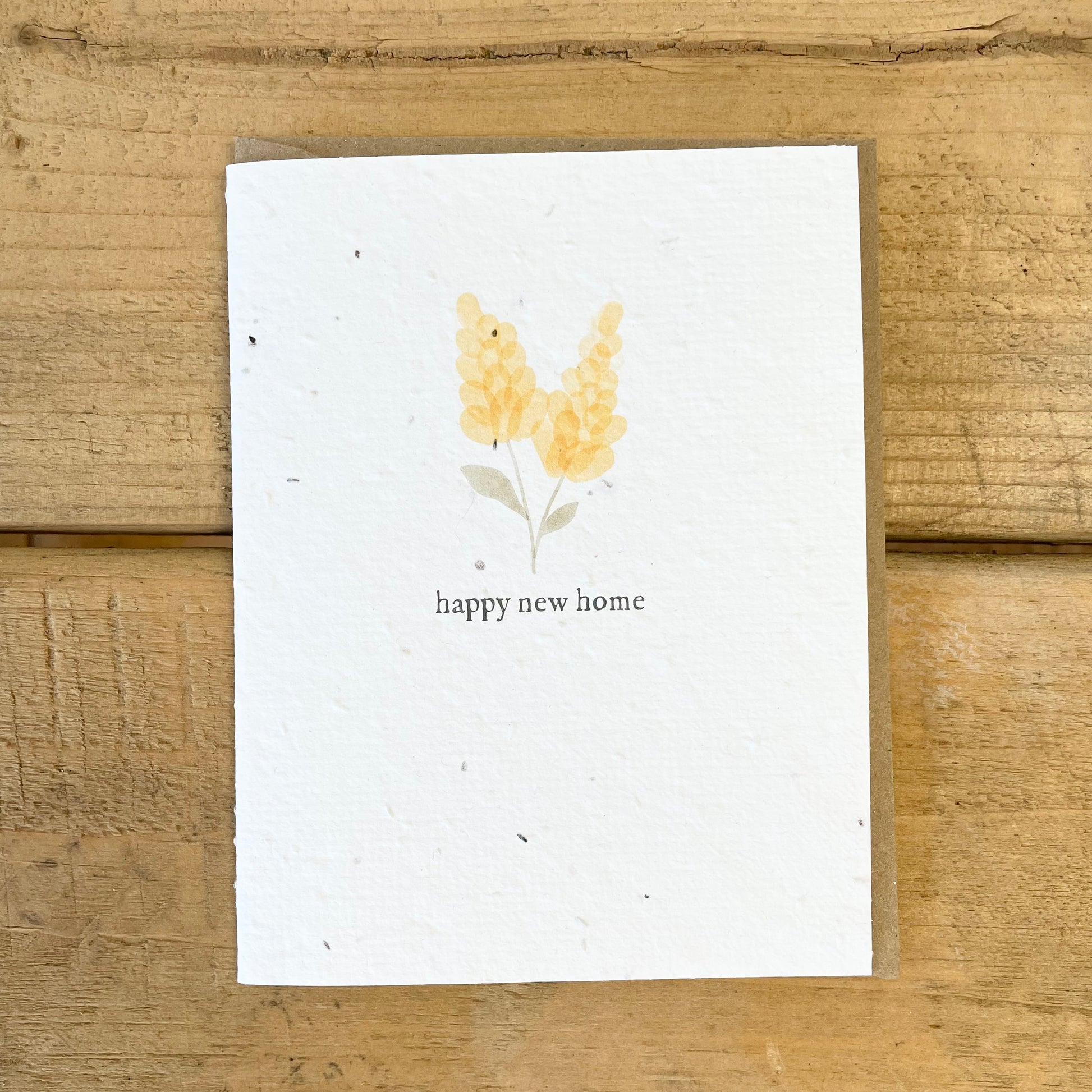Plantable seed paper cards are made from bio-degradable, post-consumer waste meaning no new trees are harmed. Each card is full of a blend of 6 different wildflower seeds, that are all tested for purity, non-GMO, and non-invasive. All cards are printed with non-toxic ink, and are left blank inside for your message.
